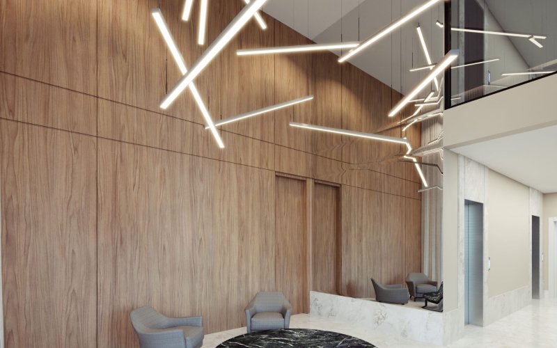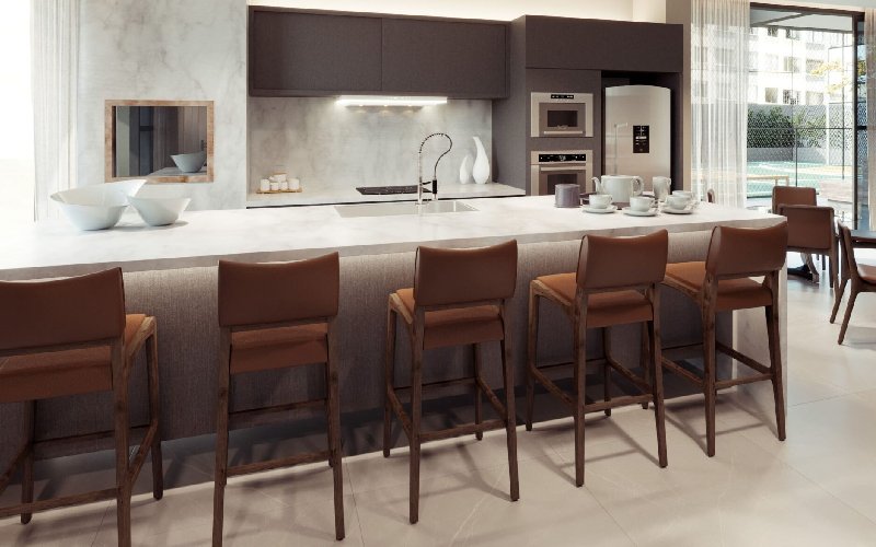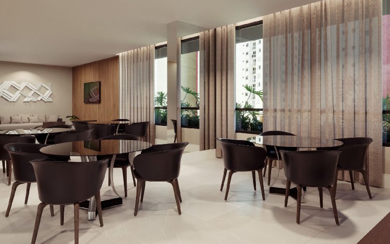 Projetado para integrar sofisticação e funcionalidade, o Greca Tower combina linhas contemporâneas com materiais de alta qualidade, como mármore e acabamentos em dourado